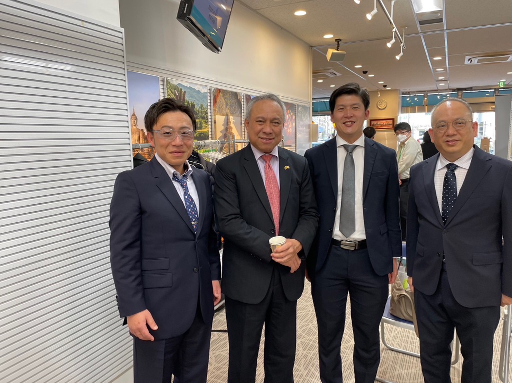 写真は左から弊社代表 大野正美、ブルネイ・ダルサラーム大使館特命全権大使シャブディン ムサ氏、BOLLSEN COMPANY LLC代表 黒滝悠太氏、BEDB 最高経営責任者代理 ダニエル レオン ニュク ミン氏