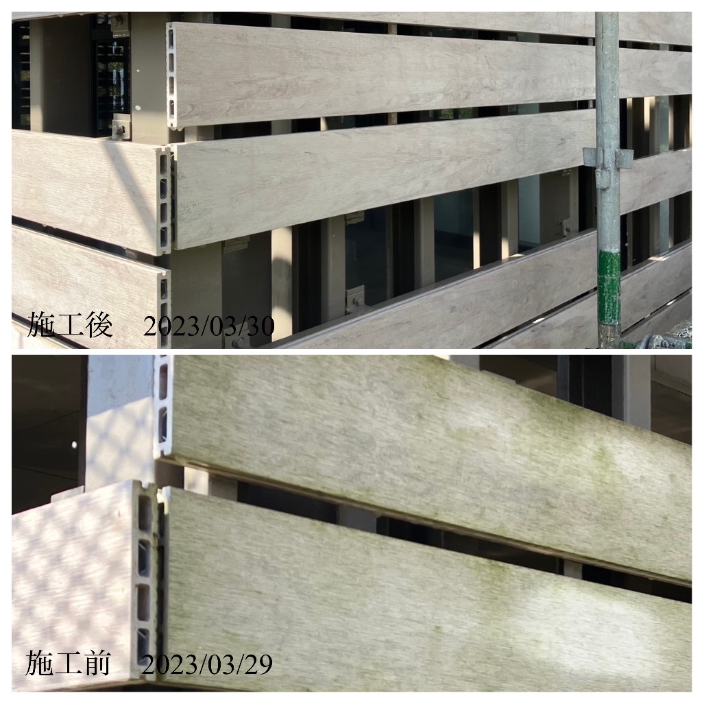 陰ってしまうところに藻がついており、そちらに次世代型光触媒のZEN NOプロテクトを施工。